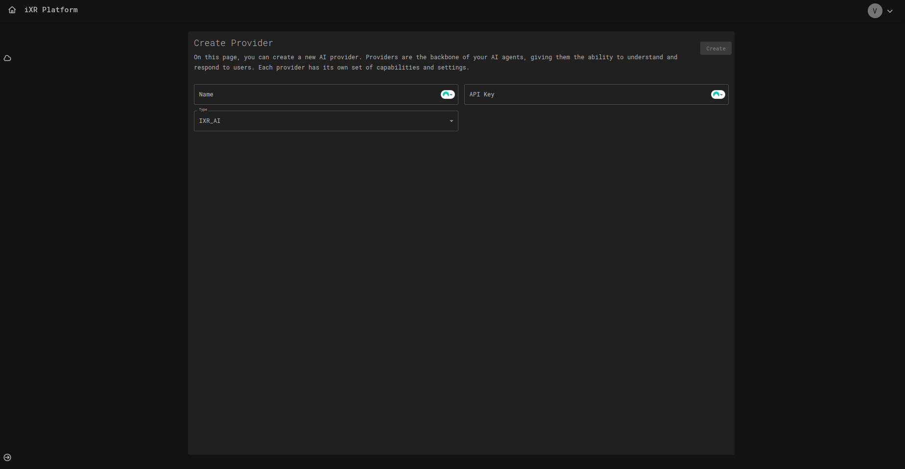 INWORLD,CONVAI,IXR_AI). - API Key โ The authentication key for the provider service.