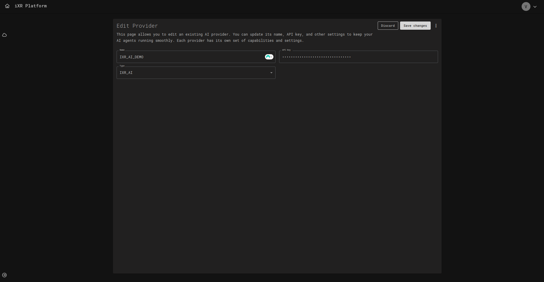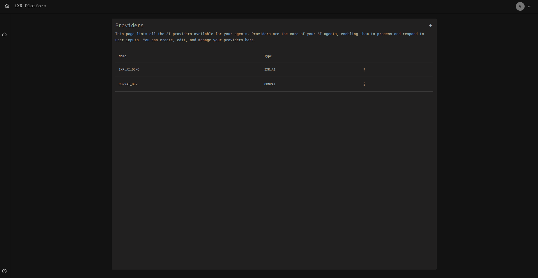 IXR_AI_DEMO). - Type โ Provider service type (e.g.,