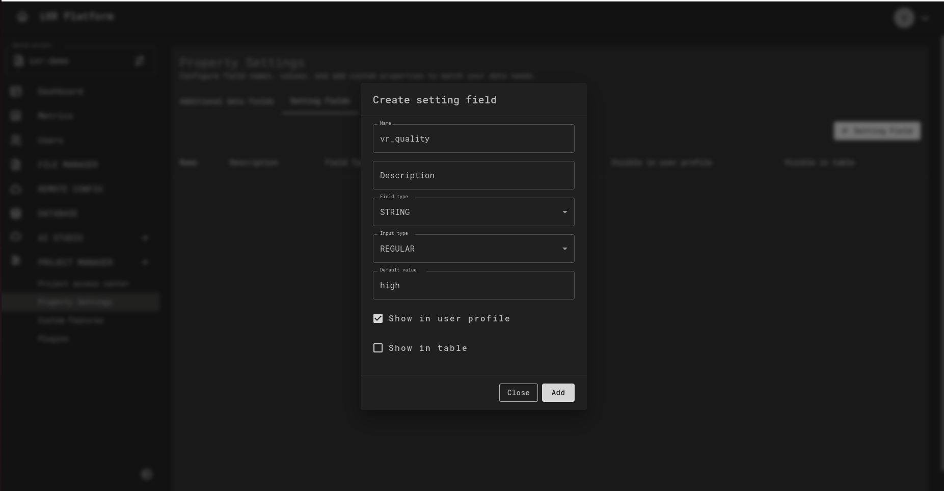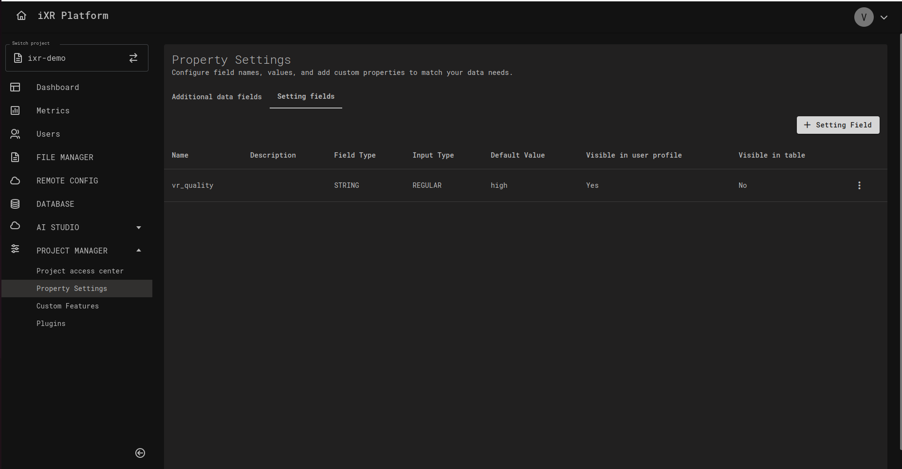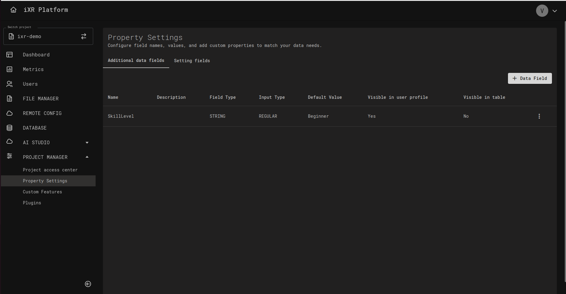 The Property Settings page allows you to extend and customize end user profiles. It consists of two main categories: